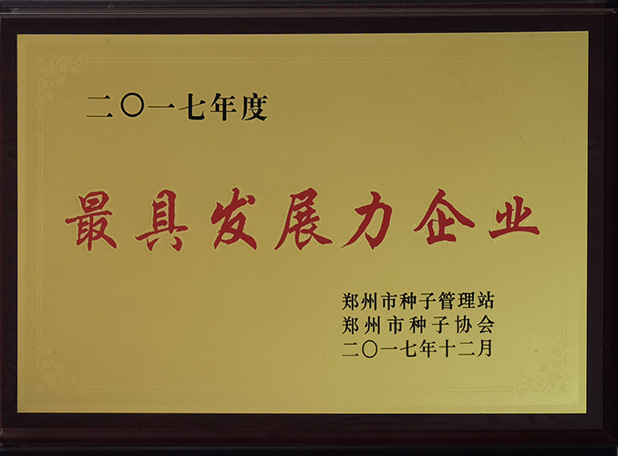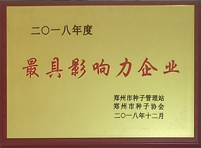 、鄭州市種子協會評選誠信企業、具有發展力企業、具有影響力企業。